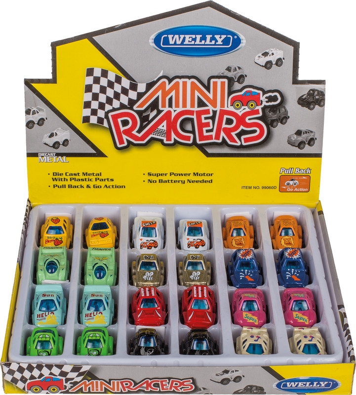 Mini-maquette de voiture OUT OF THE BLUE Racer en métal et plastique, avec moteur de rétraction, 12 couleurs assortis. Dimensions: L 35 x H 19 x P 24 mm.