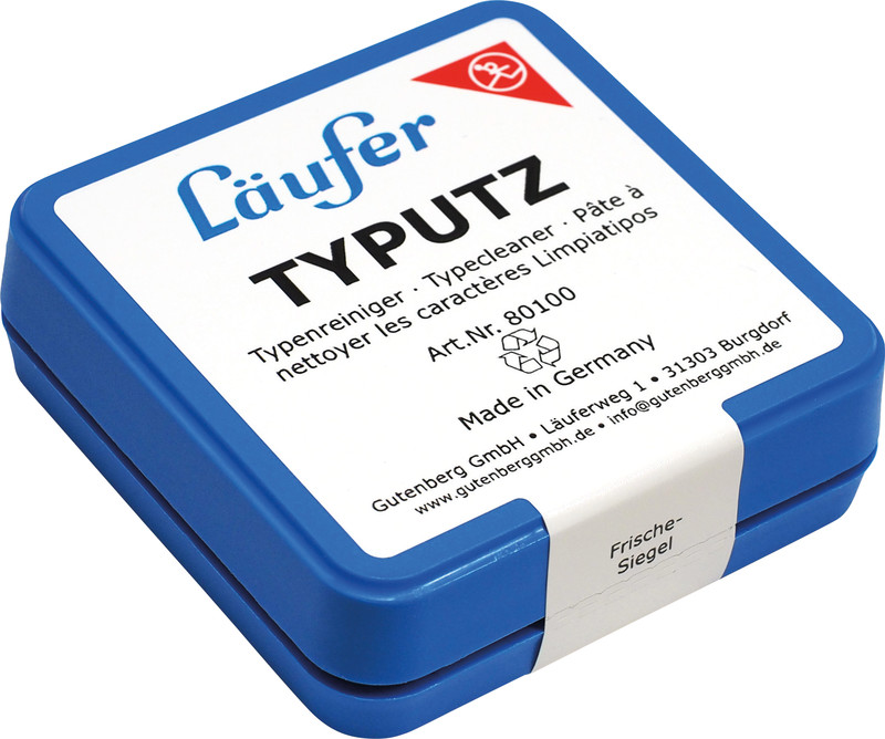 Nettoie-caractères LÄUFER Typutz pâte en caoutchouc, nettoie timbres, marguerites et étampes, en boîte refermable.