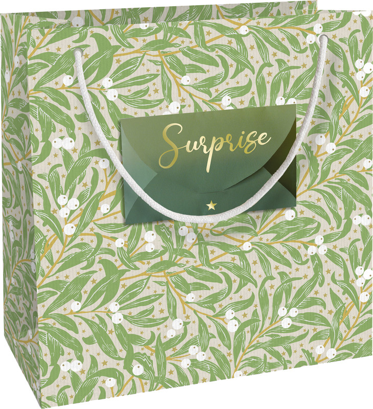 Cabas BRAUN + COMPANY Christmas Leaves en papier kraft, doublé, cordon en coton, emballage sans film plastique. sauge 200 x 210 x 80 mm