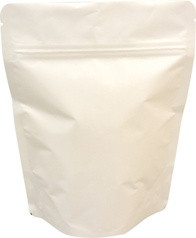 Sachet à fond plat ELCO kraft en papier kraft (face extérieure), revêtement plastifié (face intérieure), sans valve, fermeture à glissière, refermable, sans aluminium, fond stable, avec encoches déchirables, convient au contact alimentaire. Boîte de 100 pièces. 180 x 240 mm, remplissage 250 g blanc