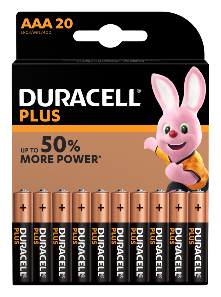 DURACELL PlusPower Aktionspackung, Inhalt der Sparpackung 20 Stück LR3, LR03, DC2400, Micro, grün, 1.5Volt Alkalie, Grösse 45x11x11mm, Preis inkl. VEG (vorgezogene Entsorgungsgebühr).