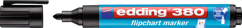 EDDING® Flipchart Marker 380 Rundspitze, Clip, speziell geeignet zur Anwendung auf Papier, Tusche schlägt nicht durchs Papier, geruchsneutrale, wassergelöste Tusche, cap-off-Tusche – einige Wochen offen lagerfähig ohne einzutrocknen, nicht nachfüllbar, Strichbreite ca. 1,5 – 3 mm. schwarz