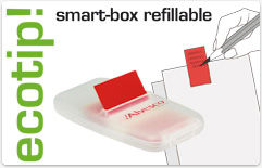 SI-RI Hafti Index-Smartbox transluzent. Beschreibbare Haftnotizen in der Grösse 25x45mm, Inhalt 40 Blatt. Nachfüllbar mit Index-Marker transparent Refill (Art.230157).