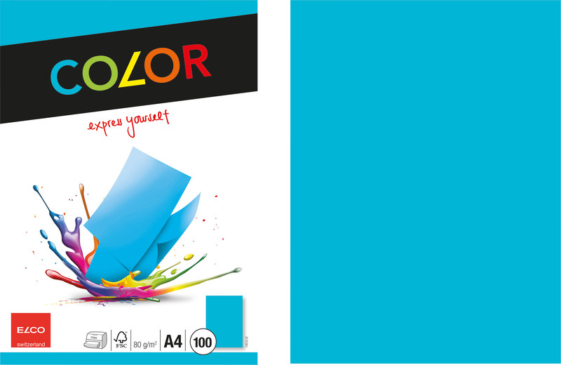 ELCO Universalpapier Color Format A4, 80 g/m2. Geeignet für Kopierer, Laser-/ Inkjetdrucker und Farblaserdrucker/ -kopierer. Zertifikat: FSC. farbenrein Packung zu 100 Blatt. intensivblau