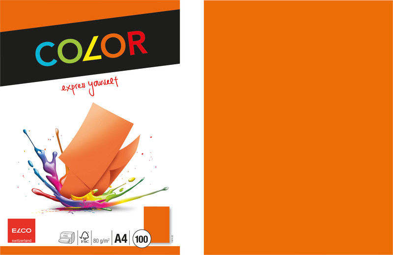 ELCO Universalpapier Color Format A4, 80 g/m2. Geeignet für Kopierer, Laser-/ Inkjetdrucker und Farblaserdrucker/ -kopierer. Zertifikat: FSC. farbenrein Packung zu 100 Blatt. orange